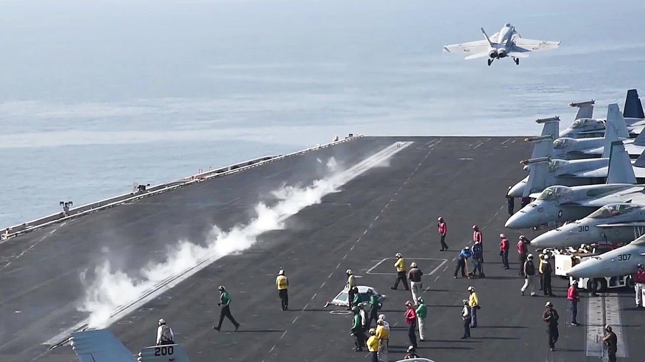 The aircraft carrier USS Dwight D. Eisenhower (CVN 69) conducts air operations. Dwight D. Eisenhower and its carrier strike group are currently deployed in the Arabian Gulf in support of Operation Inherent Resolve.