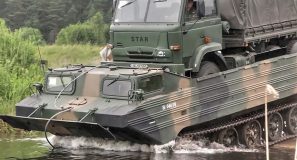Polish Soldiers Use Soviet Era PTS Amphibious Vehicle To Carrie A Truck Across River