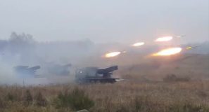 US Army Firing The M270A1 Multiple Launch Rocket System (MLRS)