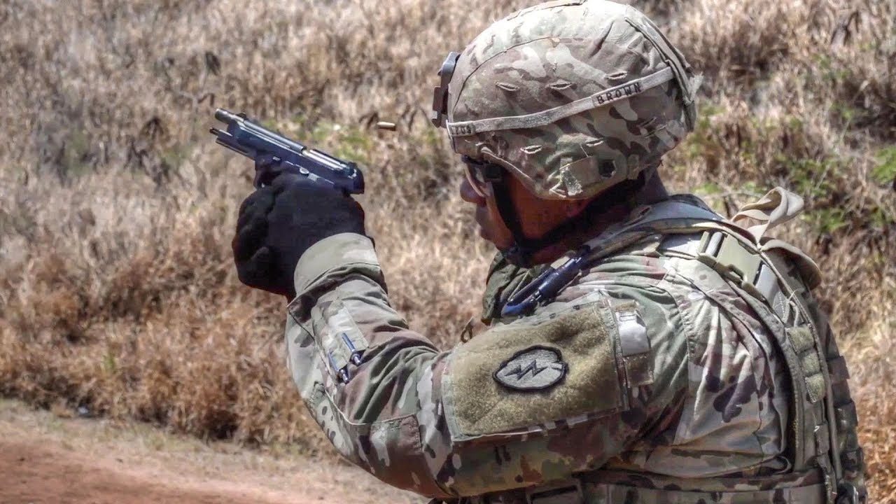Combat engineers assigned to the 29th Brigade Engineer Battalion, 3rd Brigade Combat Team, 25th Infantry Division, fire M9 pistols at Puuloa Rifle Range in Ewa Beach, Hawaii. The Soldiers were qualifying with the weapons prior to a stress shoot at the Marine Corps rifle range.