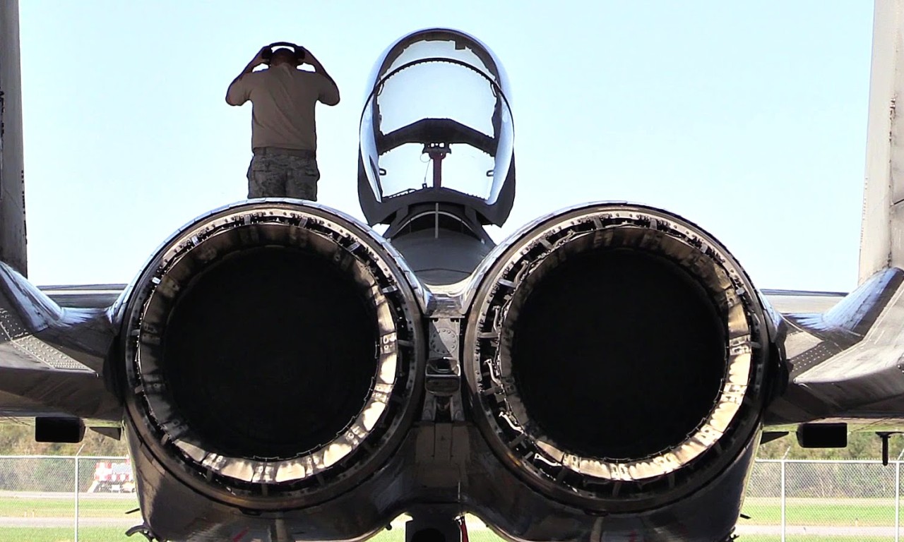 USAF Airmen from the 159th Aircraft Maintenance Squadron in New Orleans, Louisiana performing maintenance works on F-15C Eagles from the 122nd Fighter Squadron for flight during Exercise Southern Strike 16.