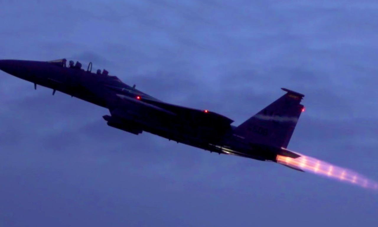 F-15E Strike Eagles take off at Mountain Home Air Force Base, Idaho.