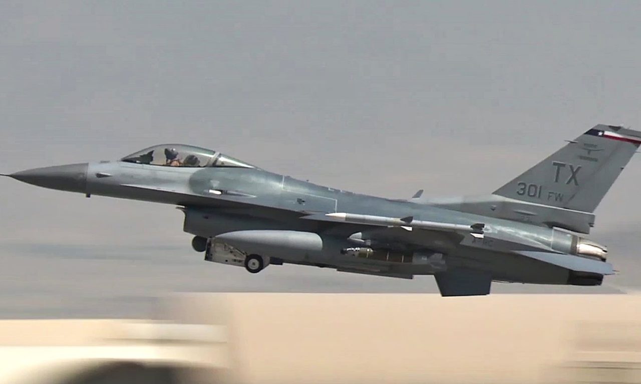 F-16 aircraft take-offs and landings during the day and at night at Bagram Airfield.