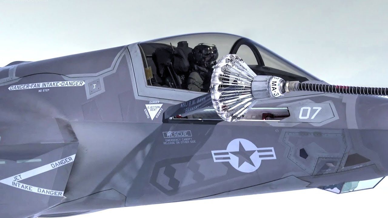 U.S. Marines assigned to Marine Aerial Refueler Transport Squadron 252 (VMGR-252) conduct in-flight refuel exercises with F-35B Lightning II and AV-8B Harriers above Marine Corps Air Station Cherry Point, N.C..