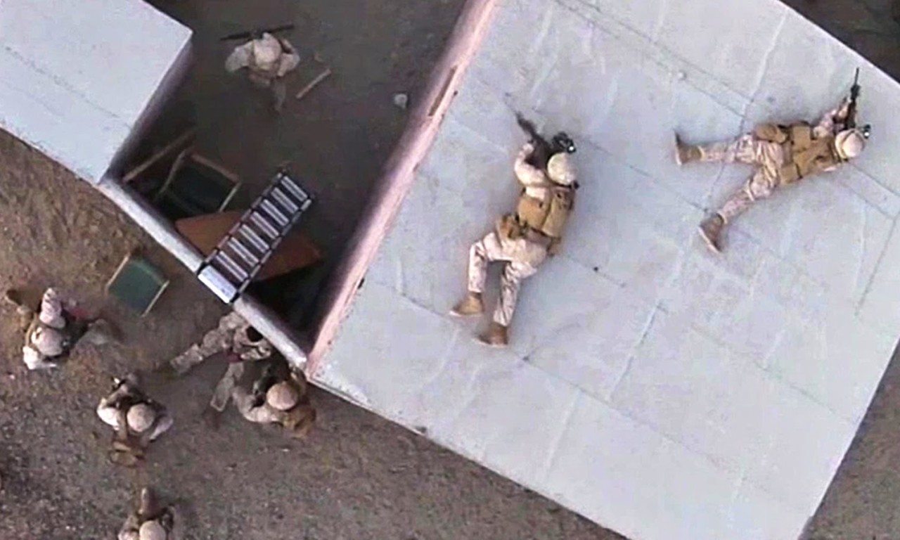 U.S. Marines helicopters insert Marines for a raid exercise on K-9 Village, Yuma Proving Ground, Arizona, during Weapons and Tactics Instructor Course (WTI) 1-16.