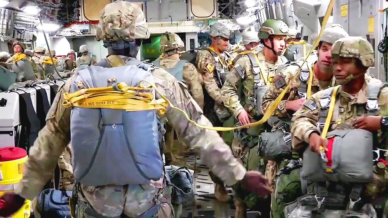Paratroopers parachute onto White Sands Missile Range for the Network Integration Evaluation and Bold Quest. Soldiers conduct in flight rigging of the T-11 parachute and jumps from C-17 Globemaster III.