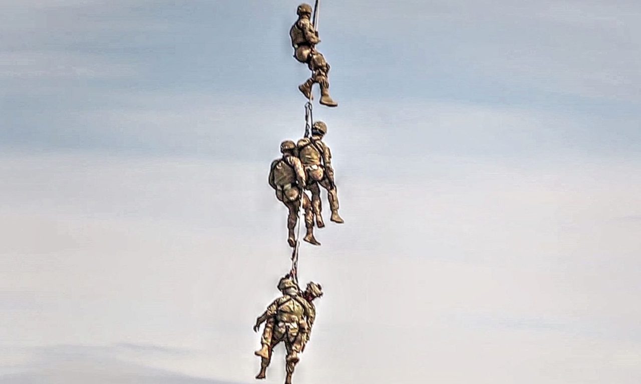 Canadian and US military service members in Latvia practice tactical air insertions and extractions from Latvian Air Force Mi-8 helicopters during NATO exercise Summer Shield 2016.