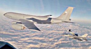U.S. Air Force KC-135 Air Refuels F-16s and E-3