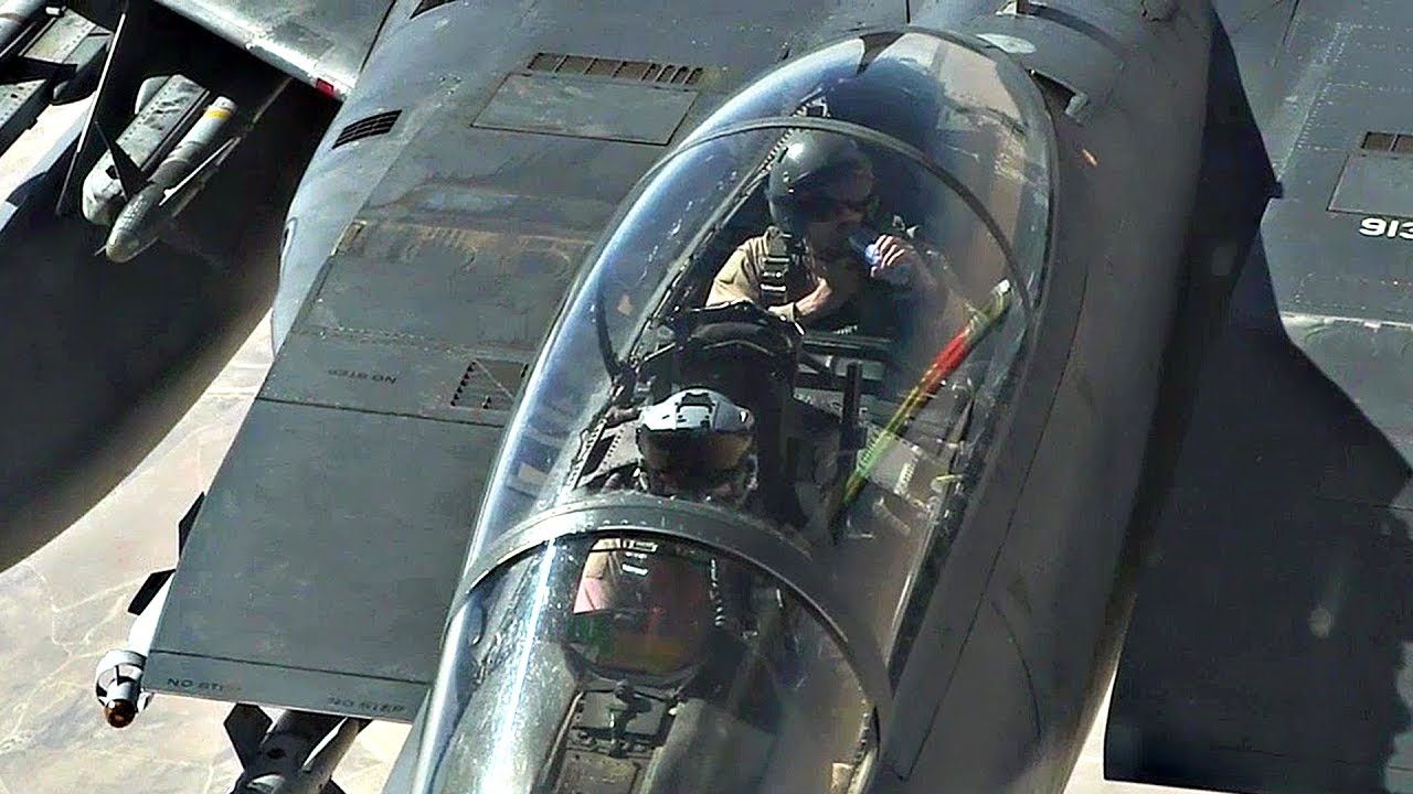 Aerial refueling of USAF B-52 Stratofortress, A-10 Thunderbolt II, and F-15E Strike Eagle aircraft with KC-10 Extender air tanker.