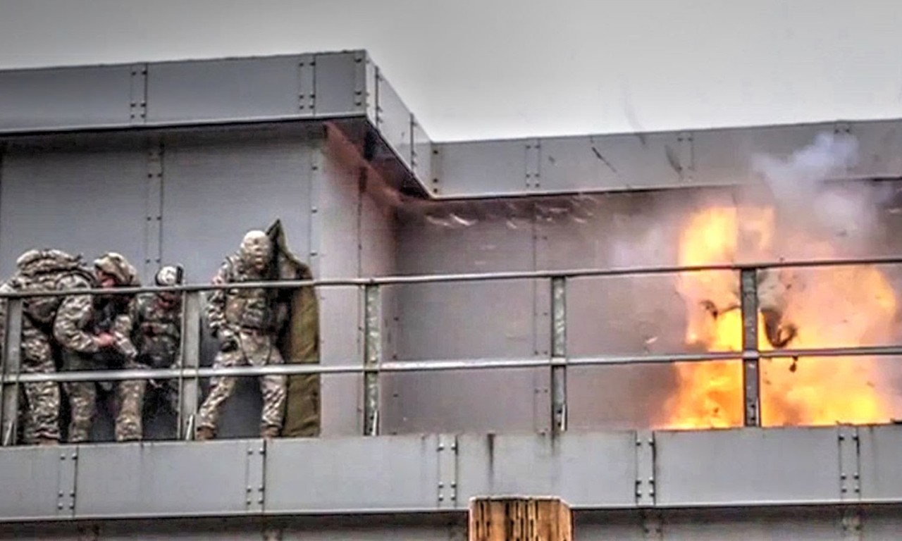Soldiers from 741st Brigade Engineer Battalion, 41st Infantry Brigade Combat Team execute urban breach operations training at Camp Rilea. Footage includes run-throughs of explosive breach training, mechanical breaching, explosive breaching, shotgun breaching and interviews.