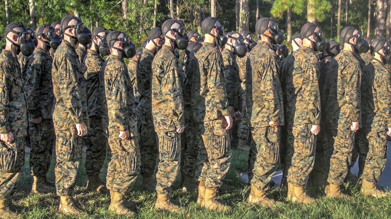 U.S. Marine Corps recruits train using the gas mask in the gas chamber at Marine Corps Recruit Depot Parris Island. The recruits were exposed to tear gas to build confidence in donning and clearing the gas mask. The recruits in this video are with Charlie Company, 1st Recruit Training Battalion, Recruit Training Regiment.
