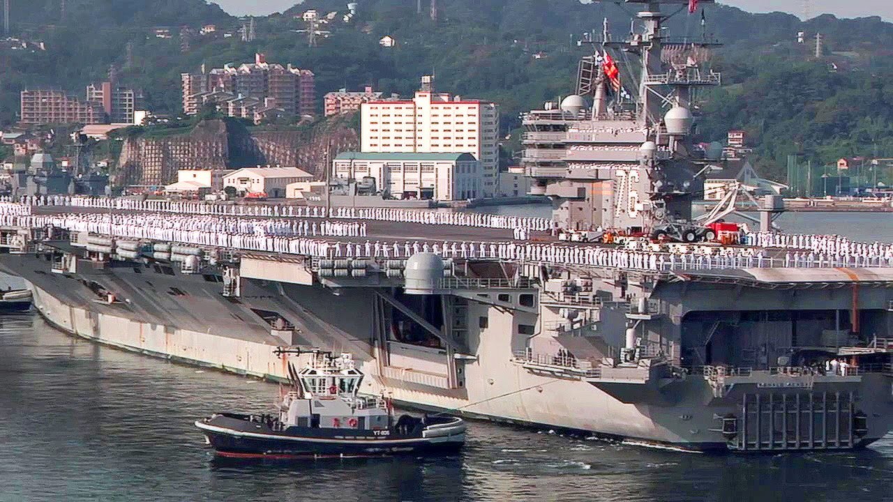 USS Ronald Reagan (CVN-76) arrives at Naval Station Yokosuka. The Nimitz-class nuclear supercarrier is now home-ported at Yokosuka, Japan.