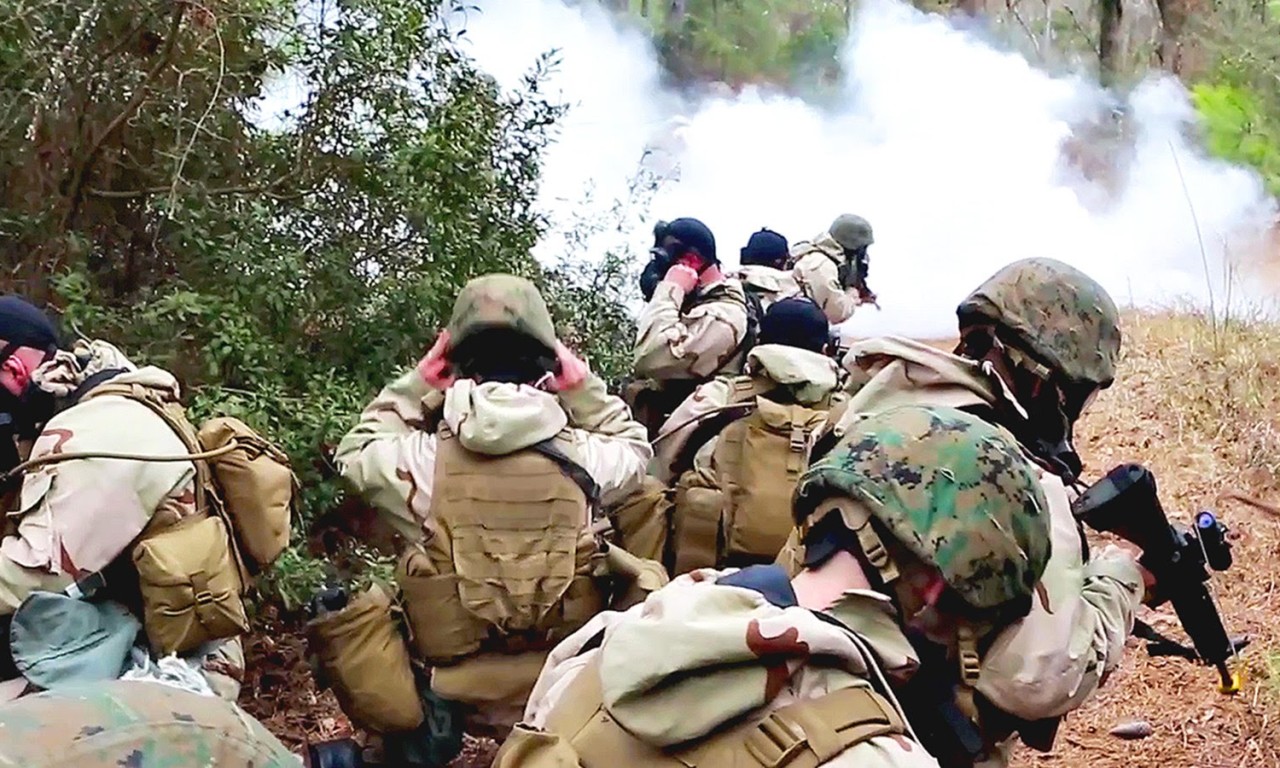 U.S. Marines assigned to Marine Wing Support Squadron (MWSS) 274, conduct Chemical Biological Radiological and Nuclear Training as part of the Air Base Ground Defense (ABGD) Field Exercise at Marine Auxiliary Landing Field Bogue, N.C.