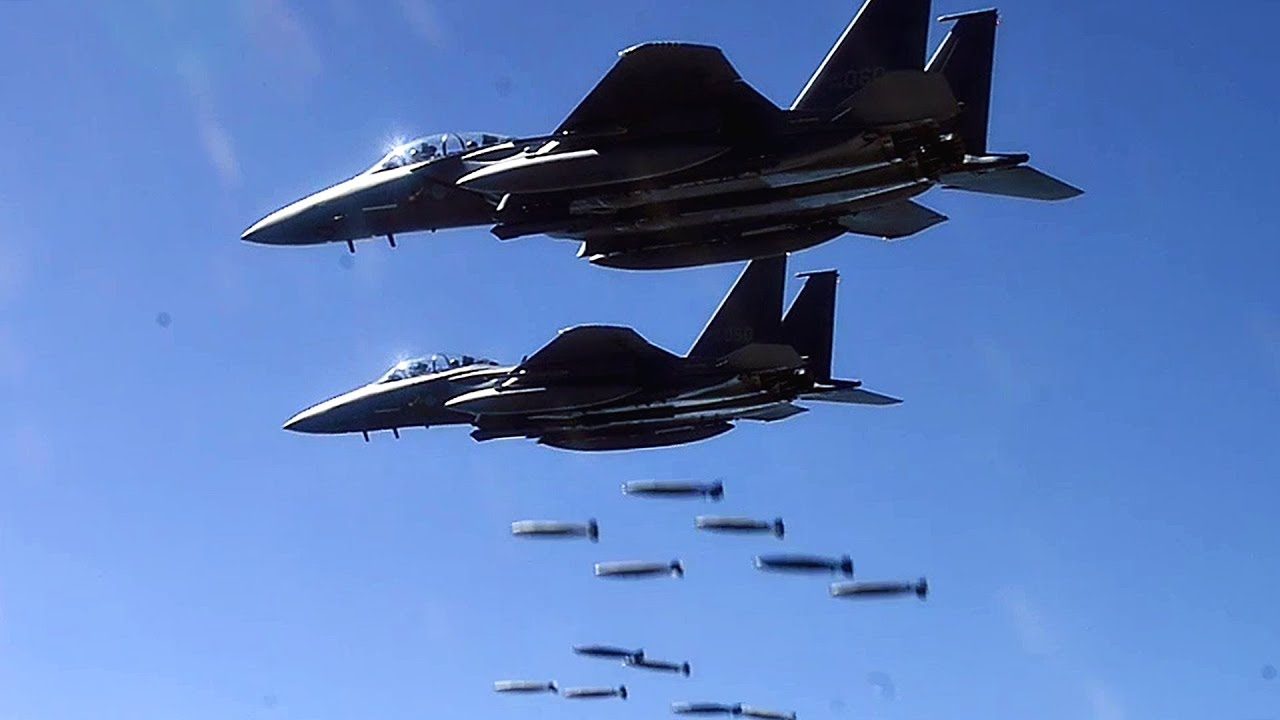 Aerial footage of U.S. Marine F-35s, U.S. Air Force B-1B Bombers, and ROKAF (Republic of Korea Air Force) F-15Ks releasing bombs during exercise. Ground footage of bombs detonating at Pilsung Range in South Korea.
