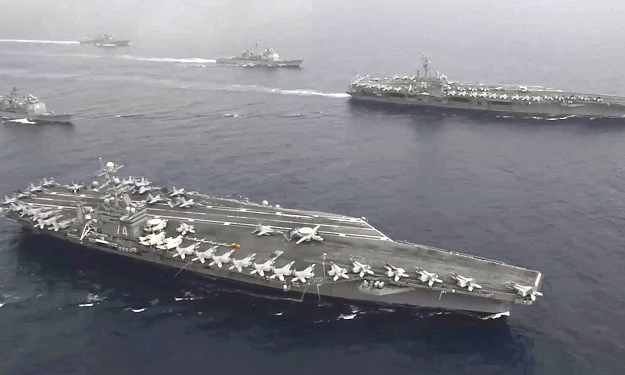 In a massive show of strength that was meant to reassure allies in the Asia-Pacific region, the U.S. Navy deployed two aircraft carrier strike groups in the Philippine Sea.