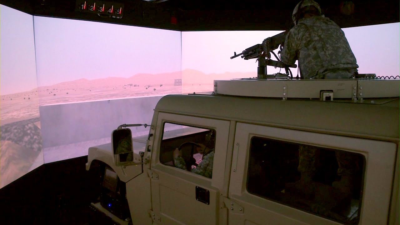 Weapons simulators available are the M998/M1026 HMMWVs and M977/M987 HEMTTs with replicated M16A4, M4, M249, M2, M240B, MK19, M9, and AT4 weapons. The virtual environment can portray day, night and all climate conditions (e.g. fog, snow, wind and rain) on a variety of geo-specific terrain.